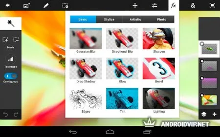 Фотошоп - это всем известный фоторедактор, и теперь его можно использовать на телефонах и планшетах. Разработчики перенесли все функции самой известной программы в эту версию для мобильных устройств. Кто работал в оригинальной программе, поймет, в чем истинное счастье. Даже подготовлен специальный пробный урок по обработке фотографий, чтобы пользователи смогли сразу ознакомиться с интерфейсом и предоставленными возможностями. Вы можете начать совершенно новый проект, или же выбрать имеющиеся фотографии на своем телефоне. Работы сохраняются как на телефон, так и на специальный сайт Creative Cloud, где пользователям дарят целых два гигабайта.