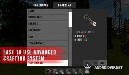 Вы очнётесь посреди леса с камнем в кармане. Исследуйте местность, чтобы найти новые игровые предметы и ресурсы, добывайте еду, охотясь на диких животных. Также немаловажно построить укрытие для защиты от незваных гостей.