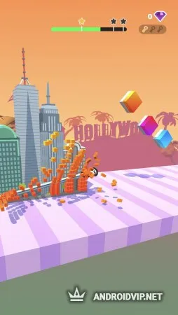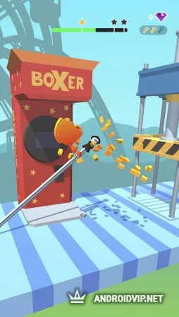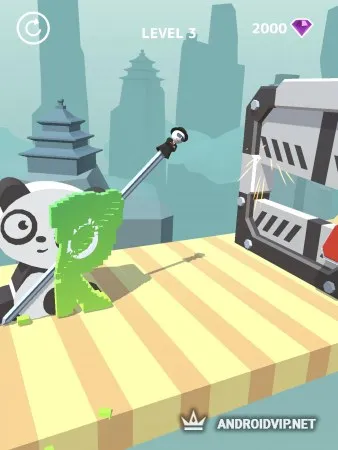 Механика игры достаточно простая, нужно нажимать на экран и держать какое-то время, чтобы лезвие увеличилось до необходимой длины и отпустить. Затем, главный герой следуя законам физики упадёт, как правило вперёд, разрезая предмет перед собой. Таким образом, необходимо передвигаться вперёд, проходя различные препятствия, и правильно рассчитывая угол падения. Собирайте по пути ключи, для сундуков с призами и копите кристаллы, за которые можно купить новые виды оружия и скинов.