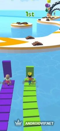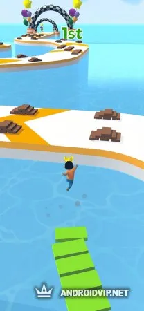 В награду за занятые призовые места вы получите золотые монеты, которые можно потратить на покупку новых скинов и различных бонусов. После пересечения финишной, черты есть шанс преумножить заработанные за гонку деньги, как можно дальше перепрыгивая по островкам. А благодаря красочной графике и приятной озвучке процесс игры становится позитивным и расслабляющим!