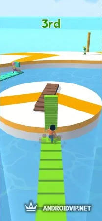 Механика игры достаточно нестандартная, как правило, в гонке одновременно участвуют до пяти игроков. Трассы имеют извилистый рисунок и сравнительно неширокие, от чего выпасть за его пределы не составит труда. По пути разбросаны самые обычные деревянные доски, которые нужно стараться собирать, так как с их помощью можно выстраивать мост, тем самым срезая углы и перемещаясь через воду на другой участок трассы. Необходимо правильно рассчитывать количество досок у вас в руке, чтобы они не закончились по среди воды.