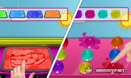 В вашем распоряжении будут несколько десятков предметов для создания лизуна, такие как: бура, клей ПВА, супер клей и так далее. Также присутствуют дополнительные предметы: различные пудры, крема, лаки, тени и другая косметика, что можно смешивать с ранее приготовленной "слизью" и создать свой собственный шедевр. После того, как всё готово, вы сможете вдоволь поиграть в полученным лизуном, потыкать в него пальцем, теннисной ракеткой или попробовать растянуть до предела.