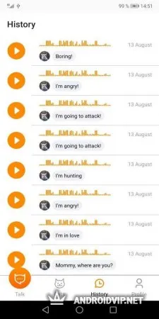 Перед началом использования, нужно подкорректировать и настроить приложение именно под вашу кошку, так как каждое животное обладает отличительной вокализацией. Если у вас дома несколько питомцев, можно для каждого из них завести отдельную карточку и сохранить все данные. Эта программа отлично подойдёт тем, кто хочет как можно лучше заботиться о своих любимцах или же просто немного поразвлечься.