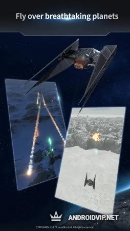 Сражения проходят над завораживающими дух планетами, также знакомые по оригинальным фильмам. Как правило, вам предстоит вести в бой целую эскадрилью, состоящую из трёх кораблей, имеющие особые характеристики и специальные возможности. Правильно выбирайте каждый звездолёт, чтобы иметь максимальную сбалансированную команду. Графика и озвучка игры выполнены на высшем уровне, что однозначно вызовет тёплые, ностальгические чувства!