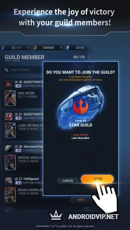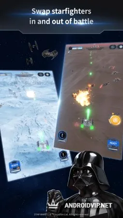Сражайтесь на светлой стороне, или же выберите тёмную, благодаря трём сюжетным линиям, вы сможете побывать в роле каждой стороны. Примите участие в культовых сражениях, вдохновлённые боями из классической трилогии и сиквела. Выполняйте регулярные задания в быстрых баталиях и зарабатывайте игровую валюту. С помощью заработанных денег, можно открыть более 80 каноничных боевых звездолётов с их пилотами, в том числе: "Тысячелетний Сокол" Хана Соло, «Глушитель» Кайло Рена, истребитель Люка Скайуокера и даже Дарта Вейдера.