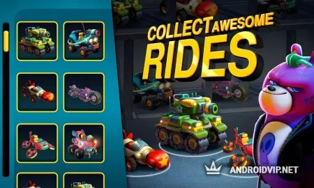 Для начала, вам будет доступен всего лишь один персонаж, но со временем вы сможете открыть десятки других героев. Каждый из них имеет свой вид транспорта и уникальные способности. Все машины можно модернизировать, устанавливая новое вооружение и усиливая остальные характеристики. Командные сражения проходят в разных режимах, где побеждает та сторона, которая собрала больше всего монет, или обезвредила всех противников.
