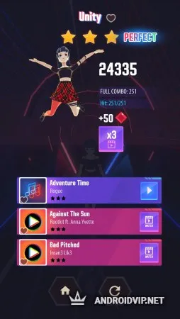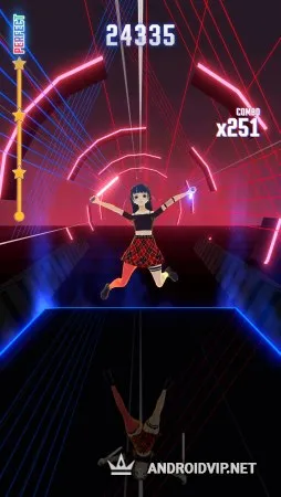 Для того, чтобы начать игровой процесс, вам нужно выбрать любую понравившуюся музыкальную композицию из огромного списка самых свежих и популярных хитов. Затем, определитесь с оружием - в галерее представлено множество световых мечей разных форм, топоров, катан и другого снаряжения. Нажимайте старт и начинайте действовать.