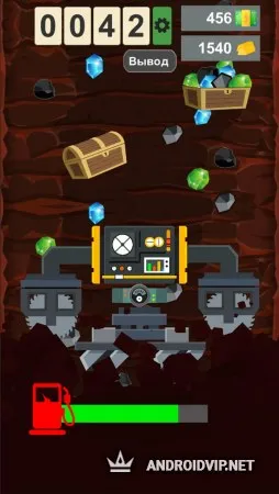 Изначально, вам будет доступна более простая версия устройства, с небольшим запасом хода. Однако этого хватит, чтобы заработать достаточное количество золота и прокачать машину. Установите новый бур, увеличьте общую мощность, расширьте бак для большей вместительности, после чего вы сможете добыть за один подход гораздо больше сокровищ. Помимо золота, можно найти бриллианты, каменный уголь и даже сундуки с зарытыми некогда драгоценностями.