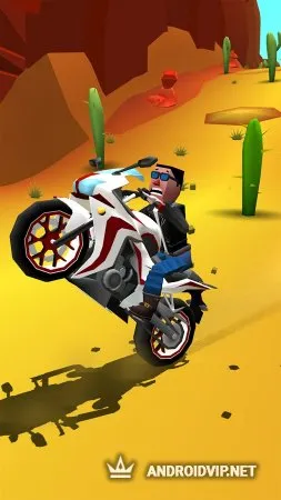 Faily Brakes. Только там бедняга-водитель пытался уцелеть на машине с нерабочими тормозами, а здесь парня на мотоцикле боднул наглый бык, преградивший ему путь на дороге. Вследствие этого Фил (так зовут "счастливчика") был вынужден нестись на бешеной скорости по склону, Отсюда, собственно, и начинается самое интересное - старайтесь проехать как можно дальше, объезжая огромные камни, кактусы и другие препятствия. Не забывайте по пути собирать монетки, которые помогут открыть новый транспорт и костюмы. Заряд позитива и порция адреналина гарантирована!