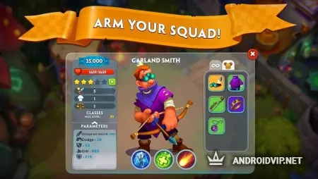Сражения в игре проходят автоматически, вам нужно выбрать местоположение каждого героя в начале боя, в зависимости от расположения сил противника. Существует большое количество предметов, что значительно могут увеличить характеристики персонажей: различные части доспехов, аксессуары и оружие. Также, не забывайте изучать новые способности и заклинания, которые можно активно использовать в бою.