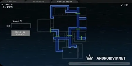 В вашем распоряжении есть карта с подробным описанием всех помещений, коридоров и дверей, что поможет продумывать примерный план перемещений монстров. Графика и атмосфера в игре созданы в лучших традициях игры, и держит вас всегда в напряжении. Перемещайтесь между камерами, не расслабляйтесь ни на секунду, следите за уровнем зарядки и у вас будет шанс прожить эту ночь!