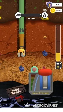 Находя разные драгоценности, зарабатывайте понемногу деньги и развивайте свою машину, укрепляя прочность бура, развивая систему охлаждения и увеличивая запас топлива. Со временем, вы сможете добраться до недр земли, где находится то самое "чёрное золото". Процесс игры довольно прост, но в то же время может увлечь на несколько часов, благодаря своему разнообразию!