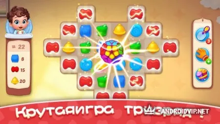 Механика в игре простая, собирайте разноцветные игрушки в один ряд от трёх штук, после чего они исчезают. Таким образом, нужно очистить всё игровое поле, чтобы пройти уровень и получить в награду довольно большое количество денег и уникальные предметы. Постепенно, зарабатывая монеты, обустраивайте интерьер, покупайте кроватки, шкафы, аттракционы, игрушки, и многое другое. Также, не забывайте приобретать качественную одежду для малыша и вовремя его кормить.