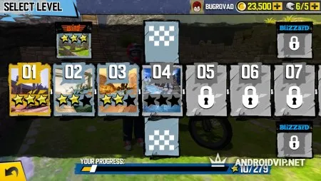 В общей сложности здесь содержится более 90 детально проработанных уровней. Преодолевайте крутые трамплины, проедьтесь по склону обрыва, заберитесь на крутые скалы и многое другое. Чем больше элементов вы сможете выполнить и чем быстрее доедете до финиша, тем больше в награду вы получите очков. По мере прохождения, прокачивайте характеристики вашего байка, устанавливая различные модули. Также, присутствует более 200 элементов экипировки, что поможет создать уникальную внешность для вашего героя.