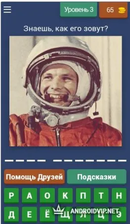 На каждом уровне вам предстоит собрать из предоставленных случайным образом букв слово, обозначающий предмет, достопримечательность, имя персонажа или человека. С каждым уровнем сложность увеличивается и количество лишних букв становится всё больше. Если вы затрудняетесь с ответом, всегда можно воспользоваться подсказкой или попросить о помощи друзей. За удачное решение задач, в награду вы будете получать золотые монеты, что можно потратить на покупку дополнительных бонусов.