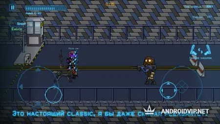 Существуют несколько персонажей, обладающие уникальными способностями, от чего каждый игрок сможет подобрать наиболее подходящий вариант. Есть возможность прокачивать персонажей, увеличивая характеристики и находя более совершенное оружие. Олдскульная пиксельная графика и качественные эффекты создают приятную ностальгическую атмосферу!