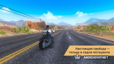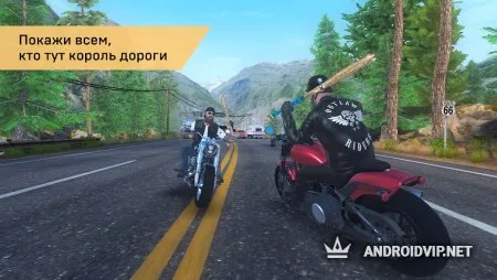 Вступайте в банду к другим игрокам, или создайте свою собственную, чтобы помогать друг другу в заездах. Существует огромное количество самого разного оружия: дубинки, автоматы, дробовики, пистолеты и многое другое. Исследите новые локации, открывайте более мощные модели байков, участвуйте в эпических сражениях и просто наслаждайтесь быстрой поездкой!