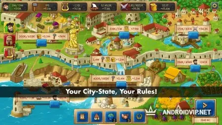В самом начала, в вашем распоряжении будет обычная деревня с небольшим количеством жителей. Распределите их по разным задачам, наладьте добычу полезных ископаемых, ценных ресурсов, и понемногу начинайте отстраивать новые здания. Чем больше жилых домов и налаженной инфраструктуры, тем больше рабочих мест создаётся. Как все операции будут выполнены, нужно завершить ход, после чего наступит следующий временной период, где ваши рабочие уже собрали некоторое количество ресурсов и денег для дальнейшего развития.
