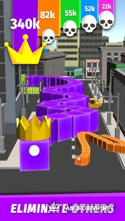 В данной игре также нужно набирать длину вашего змея пожирая различные предметы и строения. Для этого нужно заключить их в кольцо, обернувшись вокруг цели и соприкоснувшись с вашим хвостом. В отличие от классической версии, здесь вы не сможете проиграть врезавшись в самого себя или же с противником. Проиграть можно только в том случае, если более крупный противник заключит вас в кольцо. А победу конечно же одержит тот, кто до конца игры станет самым крупным из участников.