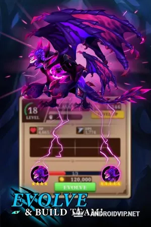 Изначально, у вас будет всего лишь один дракон, с которым вы сможете сразу же отправиться на сражения. Постепенно эволюционируйте их, от чего изменится внешность, увеличатся физические характеристики и появятся новые способности. Вы также сможете находить яйца, откуда вылупятся драконы, если как следует ухаживать за ними. Со временем, соберётся целая команда могущественных ящеров, с которыми предстоит уничтожать всех противников на вашем пути.