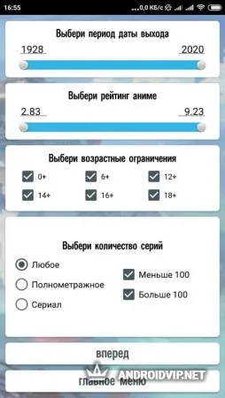Для начала, пройдите уникальный встроенный тест, который вывит наиболее подходящий жанр и выдаст определённый список сериалов и мультфильмов. Или же, просто воспользуйтесь детализированными фильтрами и самостоятельной найдите для себя что-нибудь интересное. Все ранее просмотренные аниме сохраняются в журнал истории. Также, есть возможность создать собственный список планов на будущее и вернуться к ним позже.