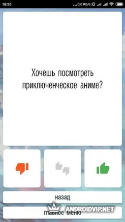 Какое аниме мне посмотреть? - это удобное приложение, которое содержит в себе большую коллекцию аниме самого разного жанра. Если вы часто задумываетесь о том, что бы посмотреть интересного, но ничего в голову не приходит, то эта программа вам отлично подойдёт. Здесь каждый любитель японской мультипликации сможет найти что-то новое для себя, и поделиться этим с друзьями!