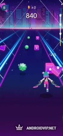 В игре вы будете управлять персонажем, который вооружен острыми клинками и разрубать по пути кубы расположенные в определённом расстоянии друг от друга, в соответствии ритмическому рисунку музыки. Старайтесь не пропускать ни одного блока и избегать бомбы, от этого зависит количество очков, которые получите по прохождению уровня. Постепенно, накапливая монеты, открывайте новые музыкальные произведения, скины для персонажа и новые виды оружия.