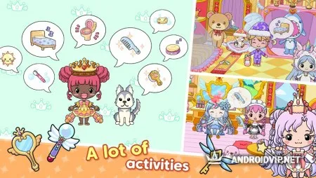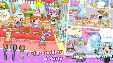 Здесь вы сможете найти множество занятий для себя. Исследуйте каждое помещение огромного замка, находите спрятанные сокровища и отправляйтесь в приключения. Нанесите макияж принцессами и идите на вечеринку у бассейна, где можно познакомиться с красивыми принцами и как следует повеселиться. После чего, отправляйтесь на кухню, приготовьте вкусный завтрак для всех, в том числе и для очаровательных домашних животных, за которыми следует хорошо ухаживать.
