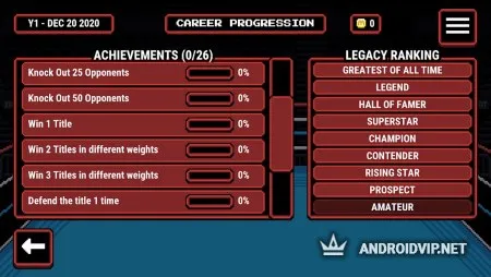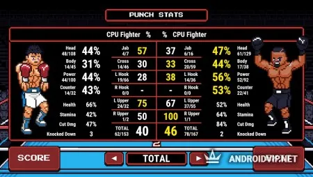 Элементы управления также стандартные, есть кнопки в левой части для передвижения, а справа кнопки для нанесения апперкотов, хуков и других видов ударов. Существуют более 10 слотов для сохранения игры в режиме карьеры. Внешнее оформление и фоновая музыка полностью воссоздаёт ретро стиль и погружает вас ненадолго в совершенно иной мир!