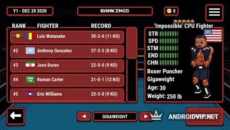 - Несколько уникальных боксёров в отличительными характеристиками;