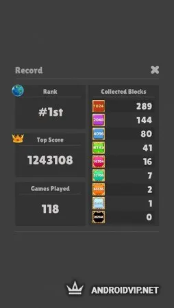 Все ваши успехи записываются в рейтинговую таблицу, где можно приписать своё имя посреди лучших игроков. Процесс игры ничем не ограничен, можно играть буквально бесконечное количество раз. Для входа в игру не требуется подключение к интернету, вы всегда сможете насладиться увлекательным процессом данной головоломки и прокачать свои логические способности!