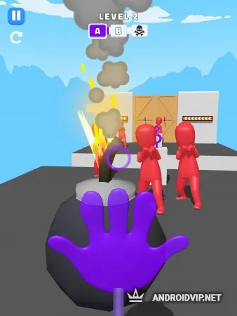 В общей сложности в игре содержится несколько десятков уровней, и на каждом необходимо победить отряд вражеских бойцов, намеренные атаковать вас в любой момент. Чтобы остановить их, воспользуйтесь окружающими вас предметами, например схватите огромный бетонный куб или бомбу и запустите им прямо во врага, от чего он буквально вылетит за пределы платформы. Старайтесь целиться в центр толпы, чтобы разом уничтожить несколько противников.