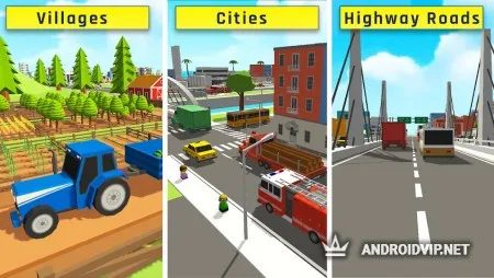 Перед вами будет большой мир с несколькими различными локациями, вы сможете побывать как в центре огромного мегаполиса так и на ферме. Выбрав вид транспорта, начинайте выполнять миссии, довозите в целости и сохранности пассажиров на такси, доставьте как можно скорее больного в медпункт и развозите на автобусе людей по городу. Выбравшись загород, предстоит доставлять грузы при помощи трактора или грузовика на дальние расстояния. Также, есть возможность сесть за штурвал вертолёта, с помощью чего можно тушить обширные пожары и доставлять людей.