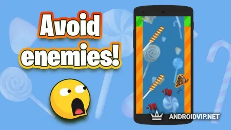 Механика игры довольно простая, немного напоминает классический раннер с видом сверху. Вам так же понадобится быстро переключать направление движения, чтобы не врезаться в препятствия в виде заострённых карамелек, движущихся пончиков и так далее. С каждым этапом преград становится только больше, появятся различные бомбы и механизмы. Если вы всё-таки ударились об препятствия, игра на этом не заканчивается, вы становитесь меньше в размерах до тех пока не потеряете все очки.