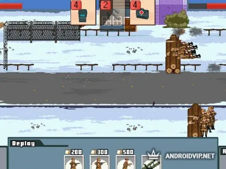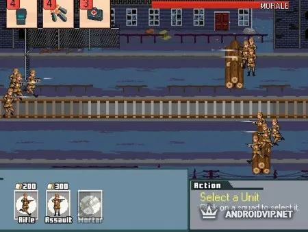 Главное, постарайтесь хорошо сбалансировать команду, отправив вперёд штурмовиков, и обеспечив их поддержкой артиллерии, гранатомётчиков и авиации. На каждом уровне условия битвы значительно отличаются, понадобится создавать план действий прямо во время боя. В общей сложности, в игре содержится более 80 уровней и 2 локации, где проходят основные действия. Графика хотя и пиксельная, но отлично передаёт атмосферу масштабной и беспощадной войны!