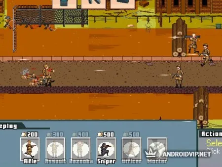 В вашем распоряжении будут более десяти видов юнитов, специальных отрядов и техники, которые примкнут в ряды вашей армии. Отпарившись на первое задание, вам будут доступны всего несколько подразделений. Но со временем, вы сможете открыть всё более мощных бойцов, и грозные боевые машины за заработанные золотые монеты. Также, можно увеличивать показатели характеристик солдат и совершенствовать вашу армию. Сражения проходят в автоматическом режиме, вам же нужно вовремя призывать подкрепление бойцам на передовой, в зависимости от сложившейся ситуации. На это однако тратится определённое количество специальных очков, которые восстанавливаются по мере прохождения миссии.