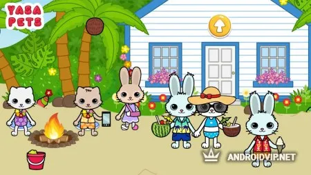 Здесь практически отсутствуют ограничения, игрок самостоятельно придумывает различные истории и сценки. В вашем распоряжении будут несколько красочных локаций: песчаный берег с морскими животными, бар на свежем воздухе, отель с бассейном, медпункт, водопад и многое другое. На каждом месте присутствует огромное количество интерактивных предметов, вы сможете взять любой фрукт, и покормить им каждого персонажа, одеть их в различную одежду или дать в руки какой-нибудь предмет.