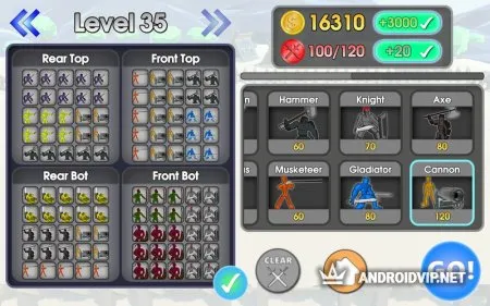 В случае победы вы переходите на следующий этап, а также зарабатываете определённую сумму денег, которые можно потратить на апгрейд войска. Если же вы проиграли - не отчаивайтесь, проанализируйте ошибки и снова атакуйте. Помимо игры на прохождение, у вас есть возможность создать собственный бой, и определить кто против кого будет сражаться - это очень увлекает.