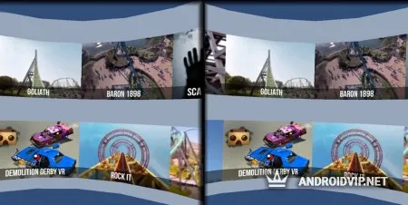 Данное приложение специально оптимизировано для шлема виртуальной реальности от Google, под названием "Cardboard". Если же у вас возникли проблемы с настройкой, вы сможете отсканировать QR код, что автоматически включит нужные параметры. В остальном, интерфейс невероятно прост и удобен, каждый сможет выбрать себе понравившийся аттракцион и ощутит на себе эти эмоции!
