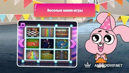 Вечеринка Гамбола - это замечательная коллекция интересных мини-игр, в которые можно сыграть как в одиночку, так и с друзьями. Здесь вы встретите практически всех главных героев из популярного анимационного сериала «Удивительный мир Гамбола». Данное приложение отлично поможет скрасить вечер с вашими лучшими друзьями и с интересом провести совместно время!