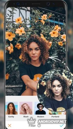 Также, для более быстрой корректировки присутствуют различные готовые фильтры, список которых регулярно пополняется. Готовым результатом можно поделиться в социальных сетях или с друзьями прямо через приложение, и сохранить на устройстве. Интерфейс программы хорошо скомпонован, потребуются всего лишь несколько операций и движений, для получения нужного вам результата!