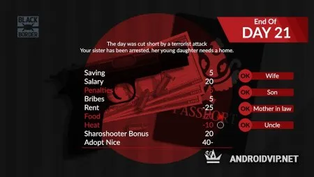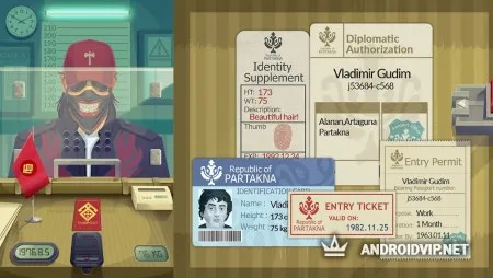 Каждый раз к вам будут подходить совершенные разные люди, которые предоставят вам свой паспорт и личные данные. В первую очередь стоит проверить документы на подлинность, затем по базе данных пробить всю информацию, вплоть о месте работы гражданина, показатели веста, роста и историю судимости. Если человек не вызывает подозрения, смело можете поставить печать, разрешающая пересечение границы, в противном случае поставьте на документах печать об отказе и отправьте подозреваемого обратно, или же прикажите арестовать. Часто происходят неожиданные инциденты, на границу могут ворваться вооружённые террористы, или угрожать вам в личных целях, чтобы предотвратить это, скорее схватите в руки пистолет и обезвредьте их!