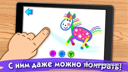 В общей сложности здесь содержится более 300 разных рисунков и 100 персонажей. Управление в игре невероятно простое, нужно всего лишь обводить подготовленному заранее контуру, самостоятельно выбрав цвета, а затем закрасить пустоты между ними. С персонажами можно даже взаимодействовать, и сыграть в различные игры. Развивайте мелкую моторику и творческую жилку вашего ребёнка за таким весёлым и увлекательным занятием!