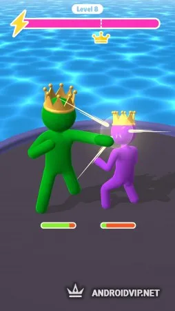 На каждом уровне вы будете находиться на длинной платформе, которая расположена посреди воды. После отсчёта вы начинаете забег к концу этой самой платформы, где по пути нужно собирать человечков такого же цвета, как и ваш персонаж, от чего он будет вырастать в размерах. В противном случае герой только будет терять вес и рост, что плачевно скажется при достижении конца, где находится босс. Если ваши размеры превосходят показатели противника, то победа практически вам обеспечена, остаётся только почаще нажимать на экран для нанесения ударов.