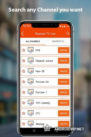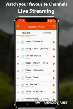После установки приложения вам сразу же будет доступен весь список телеканалов и радиостанций, которые можно открыть нажав только на одну кнопку. Здесь присутствуют десятки как популярных, так и менее известных русскоязычных каналов. Также, в добавок есть несколько зарубежных каналов и из стран СНГ. Однако потребуется стабильный и быстрый интернет, для комфортного просмотра через смартфон или планшет.