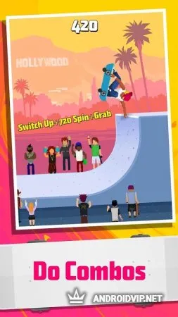 Halfpipe Hero - Герой Хавпайпа - каждый из нас видел, как скейтеры выполняют крутые трюки на хафпайпе, ловя аплодисменты и восторженные возгласы толпы. Эта игрушка от Bit Free Games дарит тебе возможность ощутить себя в шкуре звезды скейтбординга! Делай эффектные трюки - сальто, скольжения, повороты и не только. Записывай самые яркие моменты при помощи специальной функции и делись ими с друзьями. Зарабатывай деньги и открывай на них новых персонажей и новые карты.