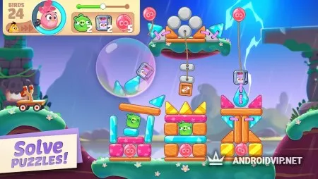 В общей сложности здесь содержатся сотни уникальных уровней, с возрастающей сложностью, где со временем появятся различные боссы и крепкие сооружения. Но у вас тоже ряды отважных птиц будут пополняться новыми бойцами, что помогут во время битв. Также, предстоит изучать различные локации и путешествовать по разным землям. Решите все сложные головоломки, прогоните злодеев и спасите ваших птенцов!
