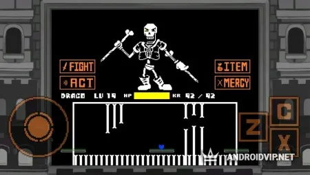Теперь же вам предстоит остановить их, а для начала, главный герой отправится в огромный зал суда, где встретится с ранее известным персонажем по имени Папирус. После небольшого диалога вы схлестнётесь с ним в битве на смерть, и стать победителем в этой схватке будет не так-то уж и просто. Бой проходит в виде старых аркадных игр, где вы предстанете в роли маленького сердца, который находится в замкнутом квадратном пространстве. Противник будет насылать различные заклинания, летающие как хаотичным образом так и по прямой траектории. Постарайтесь ловко уклонятся от всех атак и наносить точные удары в ответ.
