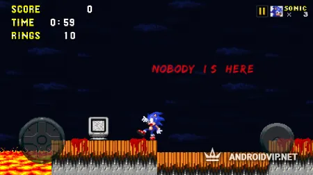 Во второй части вы начнёте свой путь в мрачной локации, где повсюду из земли торчат острые шипы и бушует раскалённая лава. Цель уровня - найти и уничтожить мониторы, отображающие числа по убыванию: 5, 4, 3, 2, 1. После этого появится большое золотое кольцо, которое ознаменует завершение акта. Далее вас ждут ещё несколько уровней с угнетающей музыкой и нагоняющими страх локациями. Если вы любите хоррор-игры серии .exe, то эта игра вам тоже понравится.