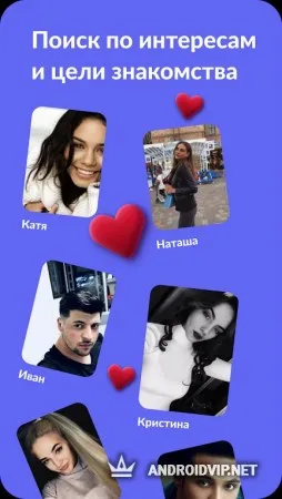 - Возможность просматривать анкеты людей находящиеся поблизости;